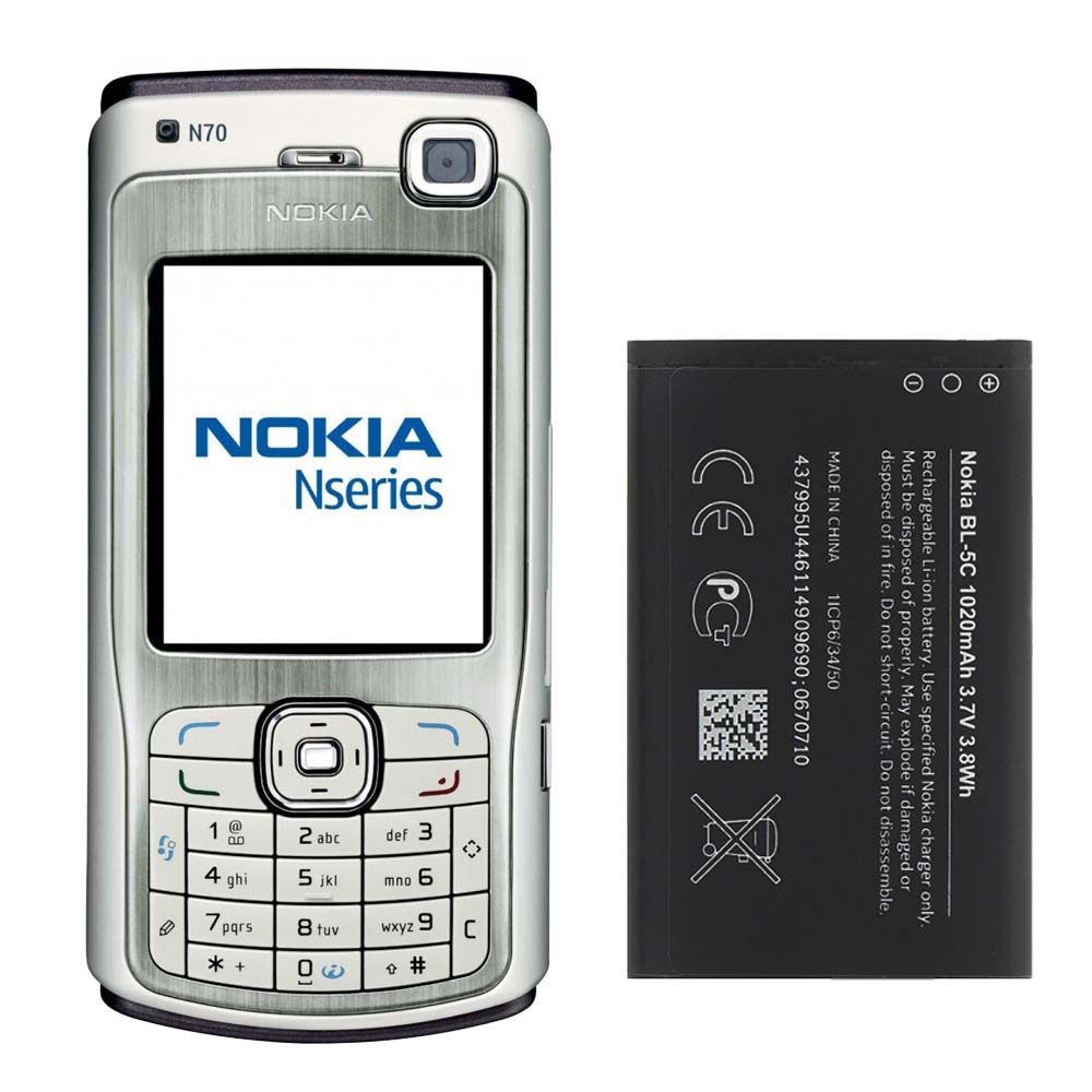 ظرفیت 1020mAh باتری BL-5C برای گوشی نوکیا N70 (Nokia N70) در زمان عرضه، توانایی ارائه مکالمه و آمادهبهکار ماندن برای مدت قابل قبولی را فراهم میکرد. نوع باتری لیتیوم-یون (Li-ion) به کاربران اجازه میداد تا بدون نگرانی از اثر حافظه (Memory Effect)، باتری را در هر زمانی شارژ کنند. ولتاژ خروجی 3.7 ولت نیز کاملاً با نیازهای سختافزاری این مدل سازگار است.
